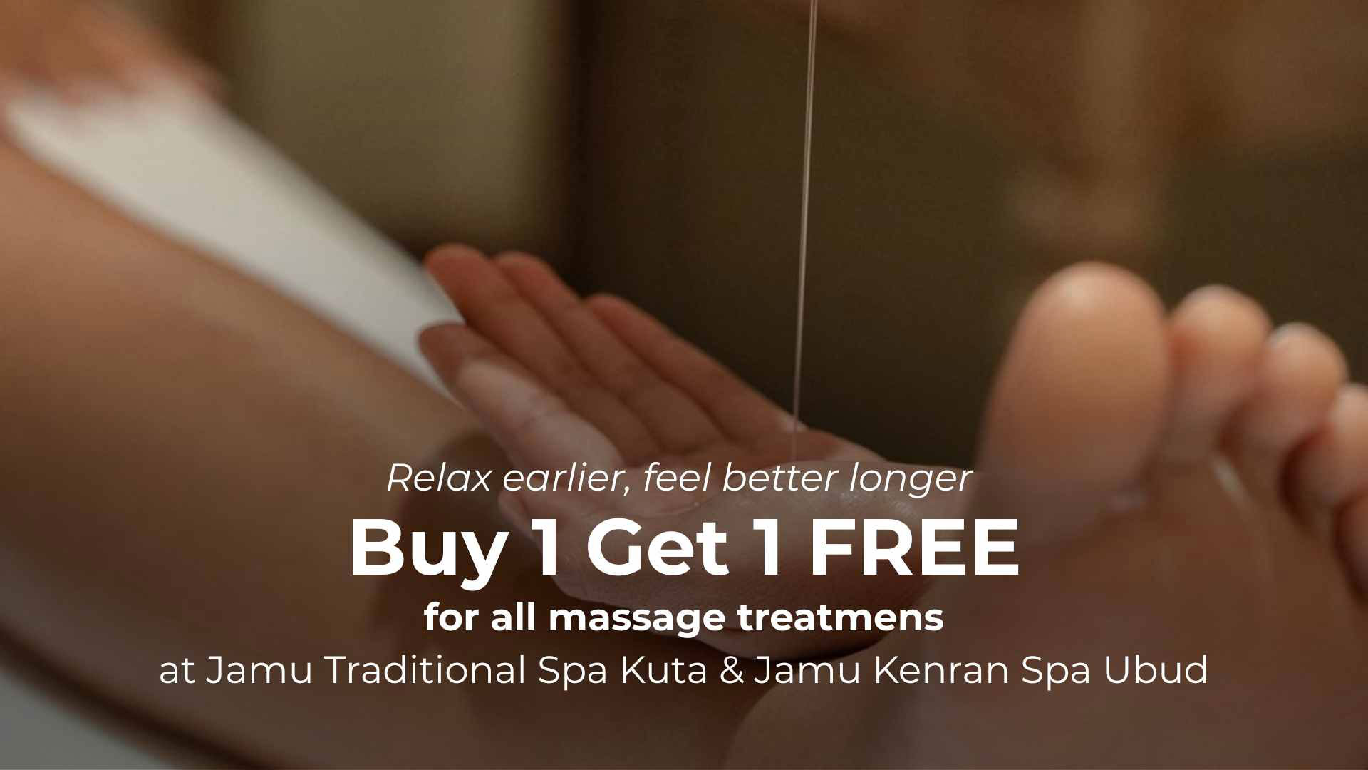 Buy 1 Get 1 Free for all massage treatments at Jamu Traditional Spa Kuta & Jamu Kenran Spa Ubud